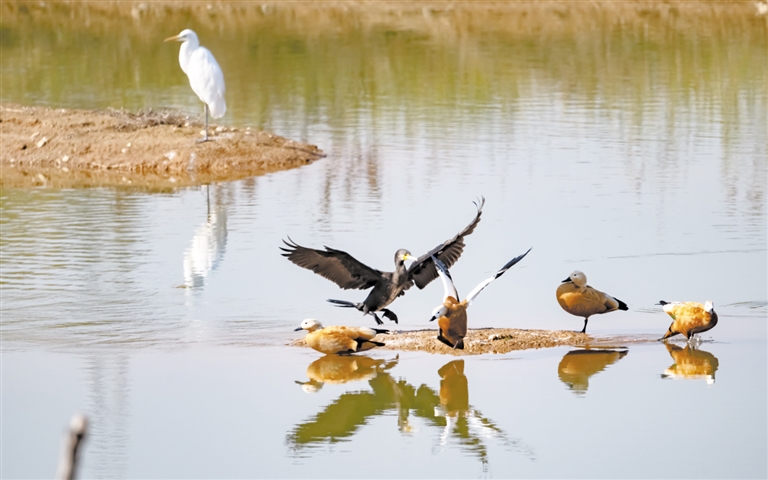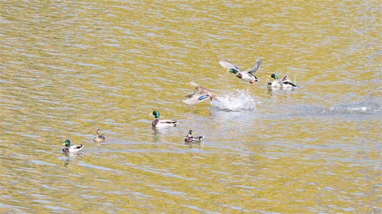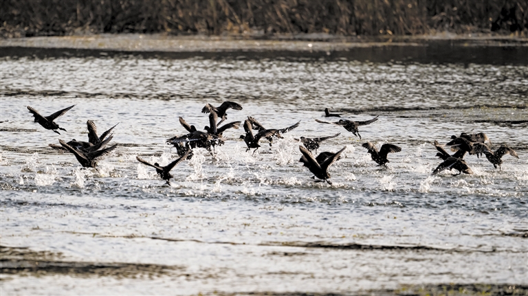 成对的鸳鸯,艳丽羽毛闪耀着迷人光彩;列队整齐的大雁,仿佛纪律严明的军队;高贵的黑鹳身姿挺拔,作为国家一级保护动物,惬意地在浅水处觅食嬉戏;还有成群结队的绿头鸭和白骨顶鸡,欢快活泼地振翅,为迁徙之路增添了几分灵动与俏皮。