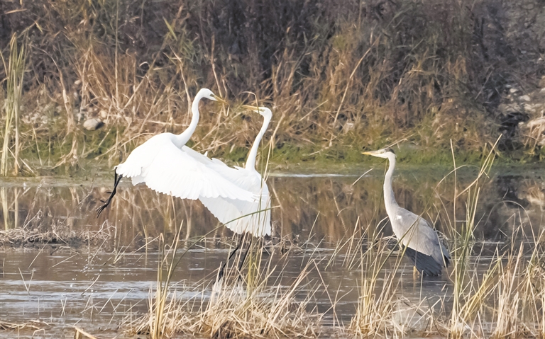 嬉戏打闹的白鹭。