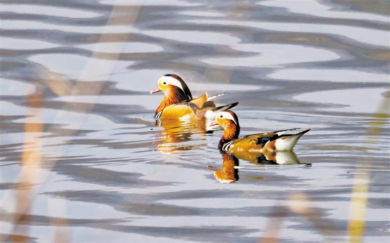 成对的鸳鸯,上演冬日浪漫。