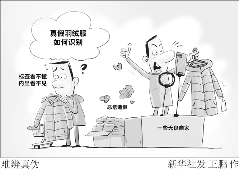 穿了没几天就跑毛掉絮,剪开面料才发现填充物并非羽绒,标签上写的和实际不是一回事……这是一些消费者购买羽绒服遇到的烦心事。标签看不懂、内里看不见,消费者如何识别真假羽绒服?