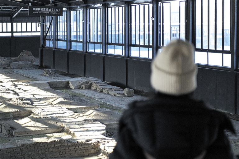 12月13日,参观者在侵华日军第七三一部队遗址内参观细菌实验室遗址。 当日,历经一个多月的筹备与布展,位于哈尔滨侵华日军第七三一部队遗址内的侵华日军第七三一部队本部旧址重新面向公众开放,并推出“侵华日军细菌战珍贵文物及史料特别展”。 新华社记者 谢剑飞 摄