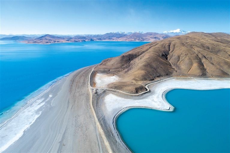 羊卓雍错简称羊湖,藏语意为“碧玉湖”,大部分位于西藏山南市浪卡子县境内,湖面海拔4400多米,风光秀美。