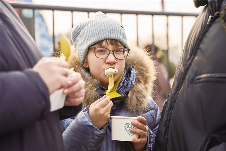 1月5日,一名儿童在俄罗斯符拉迪沃斯托克品尝饺子。 俄罗斯符拉迪沃斯托克5日举办“饺子日”活动,邀请市民免费品尝。活动上的饺子由当地多家著名餐厅提供,既有中国饺子,也有俄罗斯传统饺子,包括鳕鱼馅、鱿鱼海带馅、奶油小牛肉馅、花生酱鸡肉馅、酸奶羊肉馅等多种口味。 新华社发(郭飞洲 摄)