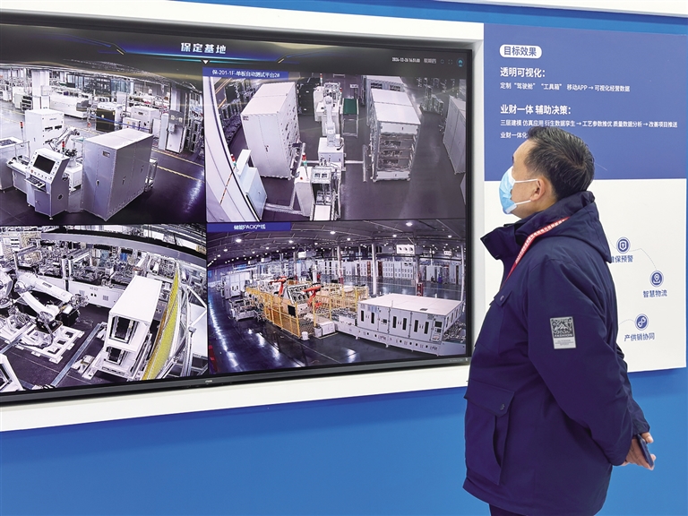 ▼在保定四方三伊电气有限公司5G技术工厂,生产数据实时采集,流程监管一目了然,“科技范儿”十足。 段恋 摄