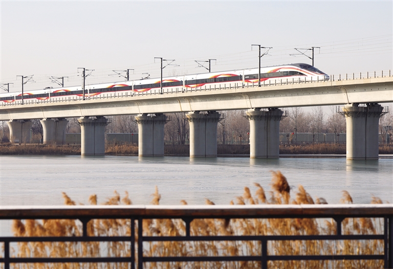 1月4日,一列动车组列车在河北省石家庄市境内行驶。