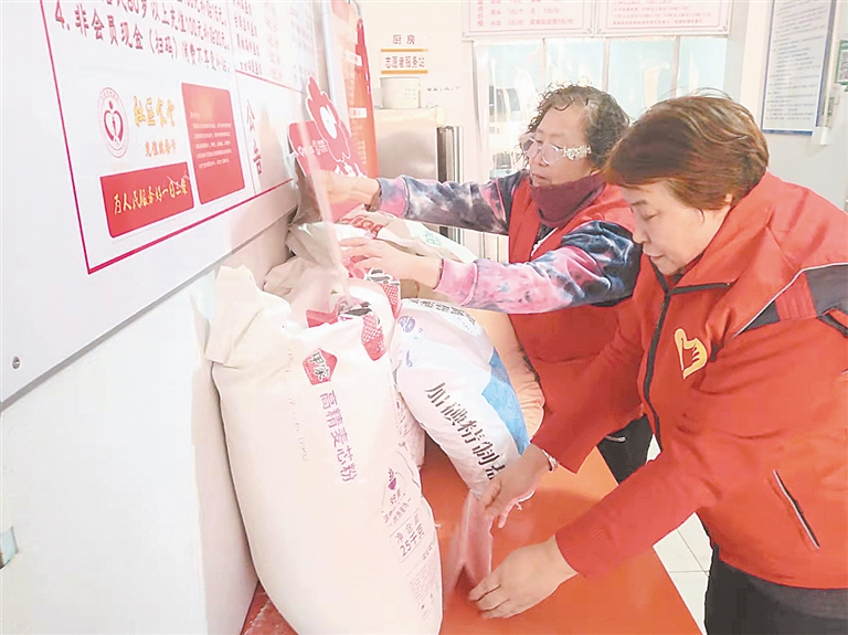 爱心企业为依棉社区老年食堂捐赠了白面、食用油、大豆、玉米面等一系列农产品。