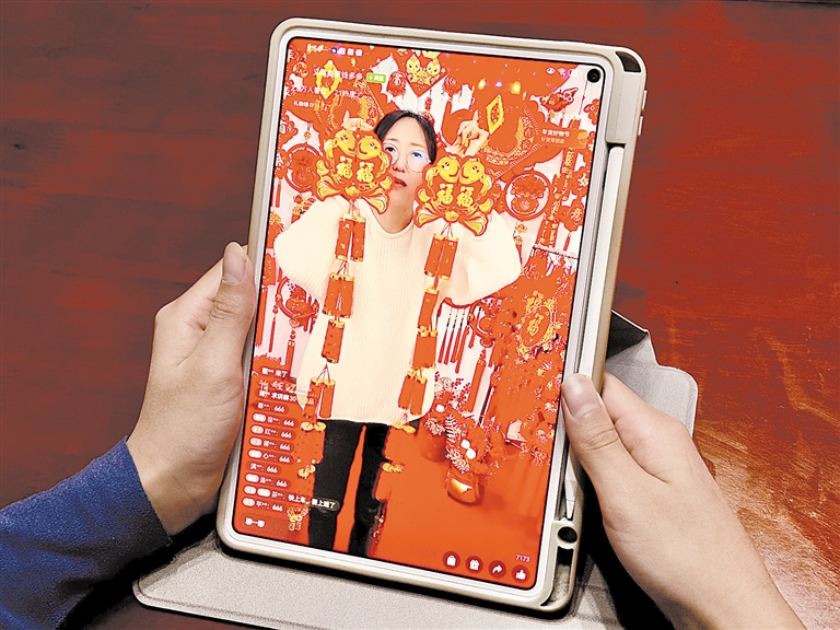 不少市民选择蹲守年货直播间采购年货。