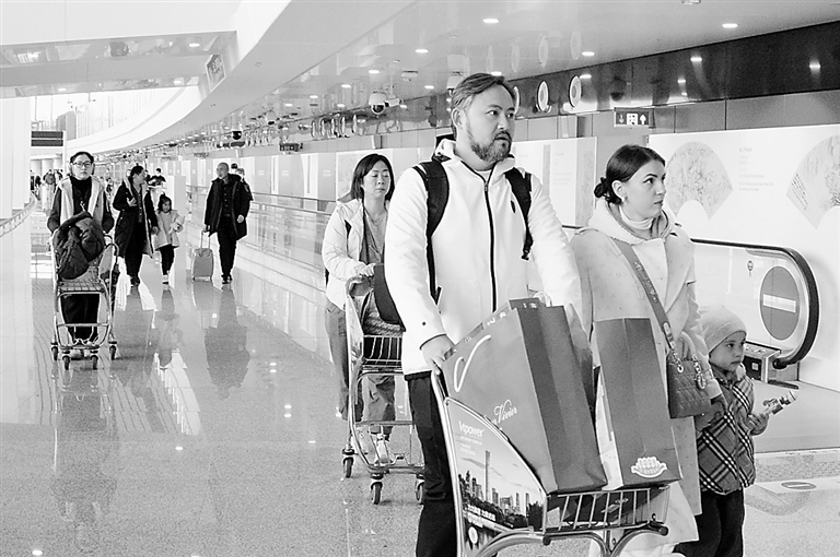 1月2日,中外旅客准备通过大兴机场边检站入境。 2024年北京口岸出入境人员达到1827万人次,办理出入境航班11万余架次,同比分别增长90%和76%。 新华社记者 李欣 摄
