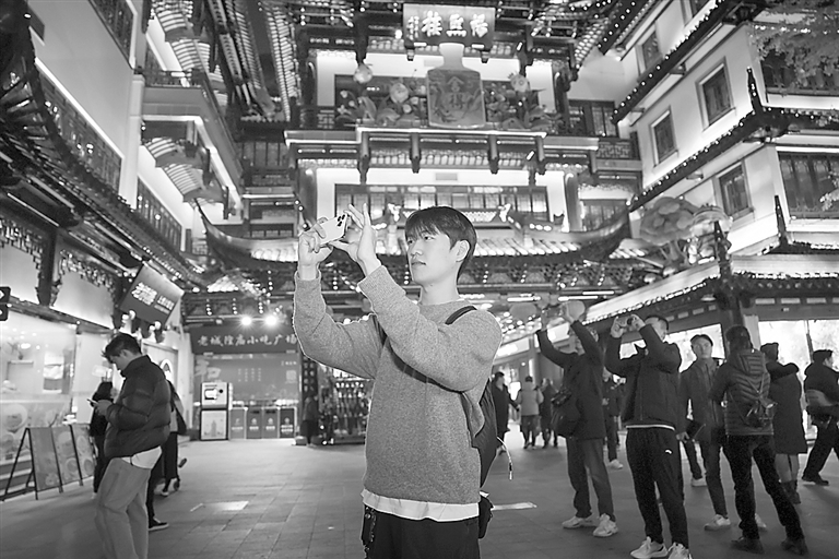 2024年12月25日,韩国游客金敏炯在上海豫园商城拍照。 近期,许多韩国游客“扎堆”来到上海旅行,韩国也流行起了“周五下班去中国”。 随着中国入境免签政策不断优化,越来越多外国游客选择来到中国游玩。据上海边检总站上海机场边检站统计,今年浦东国际机场口岸已累计查验入出境外国人超过760万人次,比去年同期增加110%。 新华社记者 王翔 摄