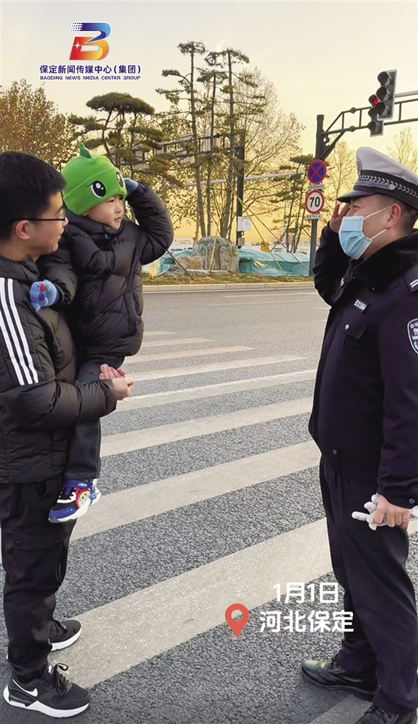 萌娃偶遇执勤民警,警察摘下手套握手敬礼,引得网友纷纷点赞。一个小小举动却暖化人心,在孩子心中种下一颗梦想的种子,为保定冬天增添无限暖意。