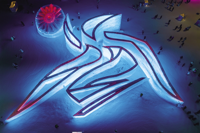 这是1月5日拍摄的亚冬会会徽冰雕。当日,2025年第九届亚洲冬季运动会迎来开幕倒计时30天,目前各项筹备工作进入冲刺阶段。