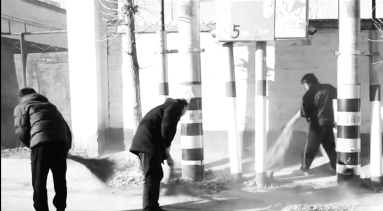 村民们正在清扫道路垃圾。 安国融媒供图