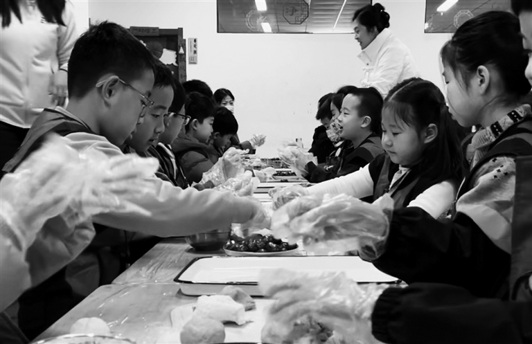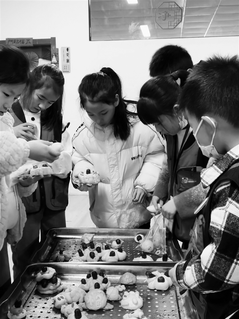 “花馍是我国古老的传统手工艺,以面粉为主要原料,经过切、捏、揪、挑、压、搓、按等操作,制作成精美的面坯,再蒸制而成,距今已有两千年历史。逢年过节、结婚祝寿等重要场合,蒸制的花馍都是点睛之笔。它不仅喜庆好看,还蕴含着满满的传统文化内涵。”现场,授课老师一边展示,一边讲述花馍的历史。小记者们听得津津有味,时不时发出惊叹。