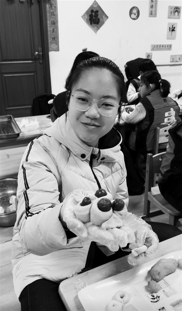 “第一口,我要给妈妈吃。”“老师,我给爷爷奶奶吃。”……拿着自己亲手做的花馍,孩子们笑得格外灿烂。