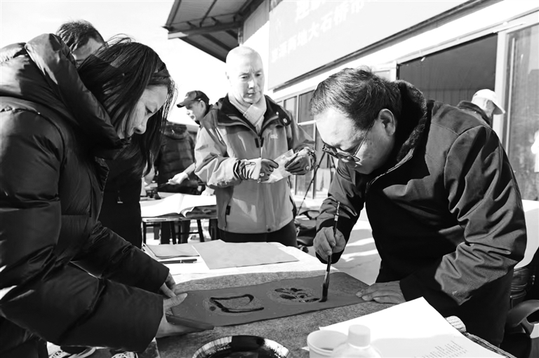 保定晚报讯(通讯员高长安 张容彬 刘洵)1月10日,涿州市和北京房山区书法家协会20余名书法志愿者,走进涿州市新发地大石桥农产品批发市场,给商户和群众送去春联等“文化年货”。