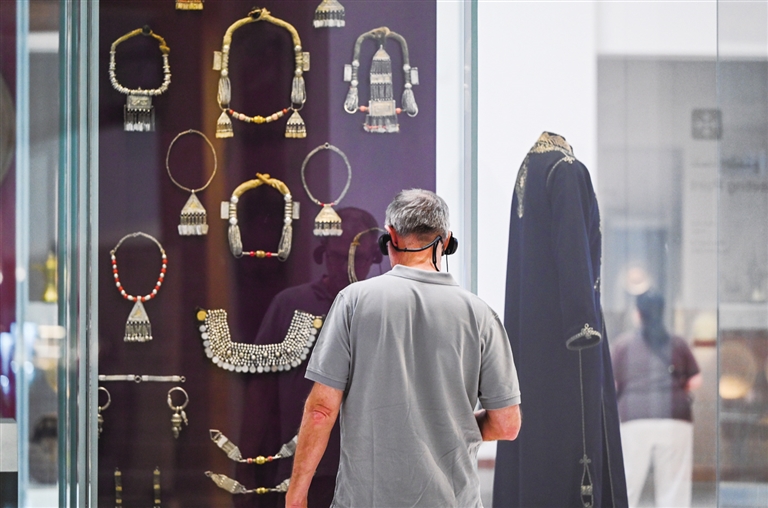 1月12日,游客在阿曼马斯喀特参观阿曼国家博物馆。阿曼国家博物馆位于马斯喀特,馆藏丰富,展品涵盖了阿曼历史的各个方面,是当地特色的文化地标之一。 新华社记者 刘磊 摄