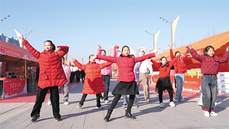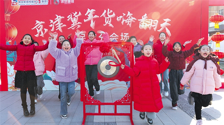 “对你说声新年快乐……一起说声新年快乐!”一群活力四射的小朋友在黄花沟公园东园门口舞动一曲《新年快乐》,跳完舞,拿起槌,槌落声响——京津冀年货嗨翻天保定分会场年货大集鸣锣开市。