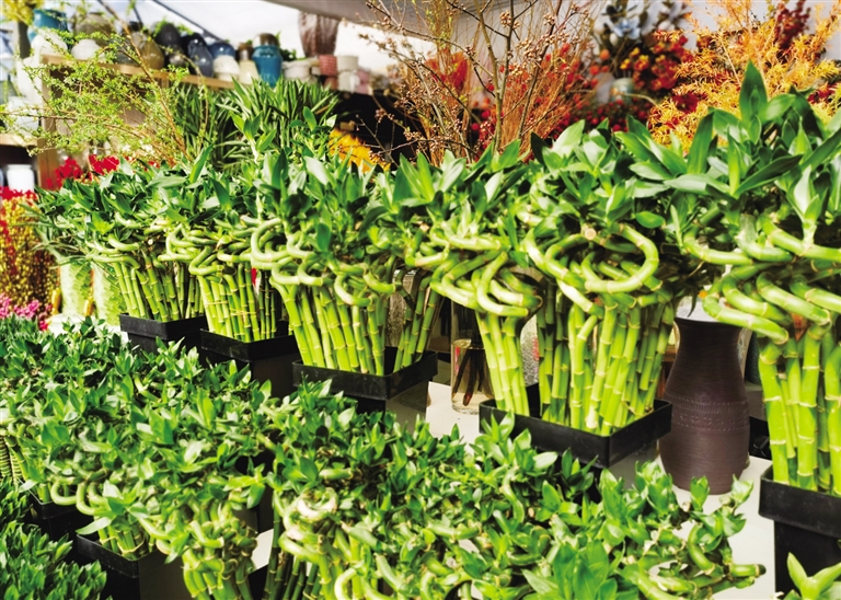 除了鲜花,绿植也被越来越多的居民列入春节购物清单。比如含有吉祥寓意的转运竹颇受喜爱,大家都盼着新一年事业学业节节高,顺风顺水。