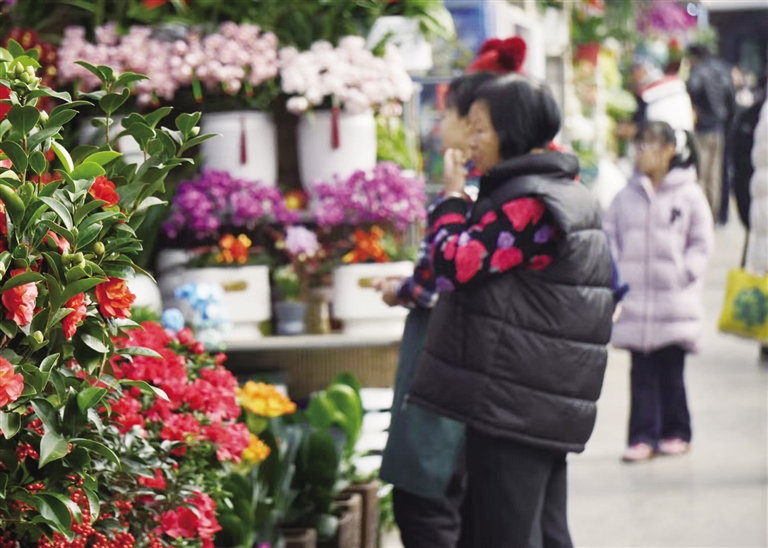 在新春前夕,花市编织着城市的年味,吸引着市民纷至沓来,共赴这场芬芳满溢的新春之约。