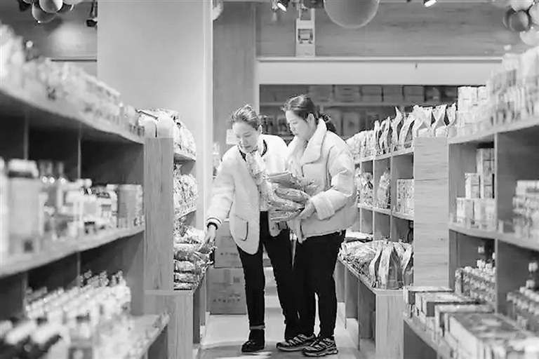 1月13日,顾客在义乌国际商贸城五区的一家进口食品商店内挑选商品。 新华社记者 江汉 摄