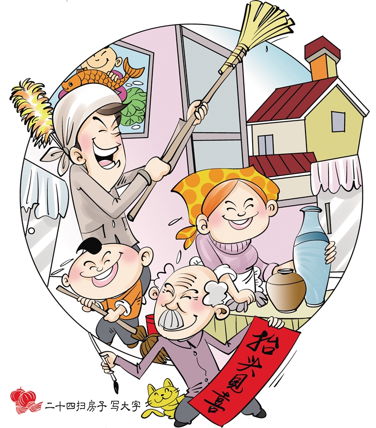 腊月二十四是中国传统的扫尘日。每到这一天,家家户户都会进行彻底的大扫除,迎接新的开始。这一习俗在北方被称作“扫房”,在南方则被称作“掸尘”,都体现了人们对美好生活的向往。 嘎子陈(陈永亮)绘