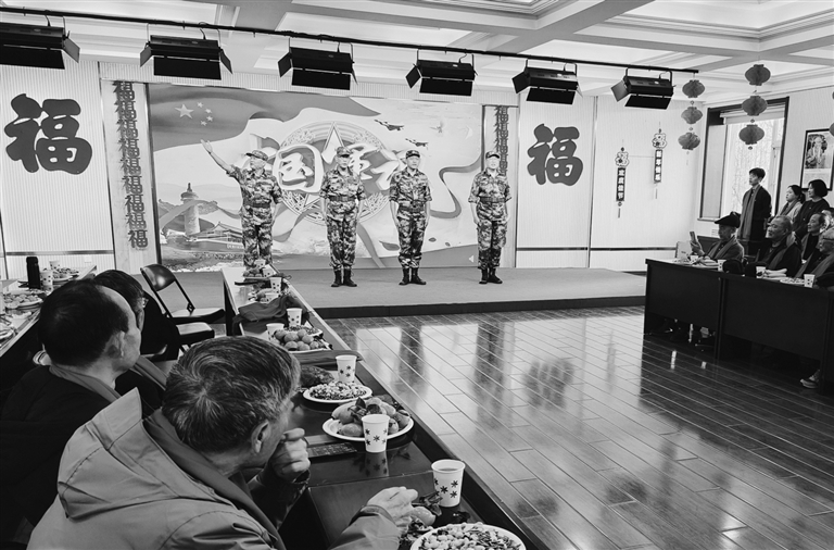 节目表演间隙穿插“你来比划我来猜”“蒙眼插筷子”“大显身手粘福气”等游艺节目和三轮抽奖环节,书法志愿者现场为军休干部写春联、送祝福,现场一派欢乐祥和、团圆喜庆的节日氛围。