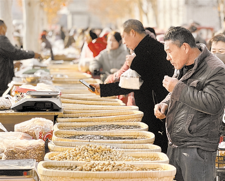 花生、瓜子,购买这些必备年货的人们络绎不绝。