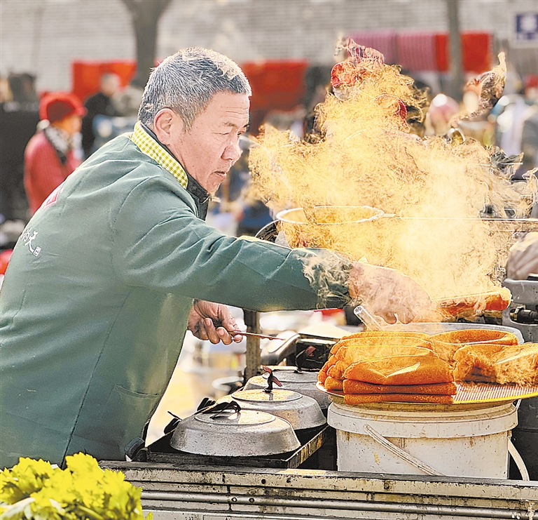 集市上炊烟缭绕,充满了浓浓的烟火气。