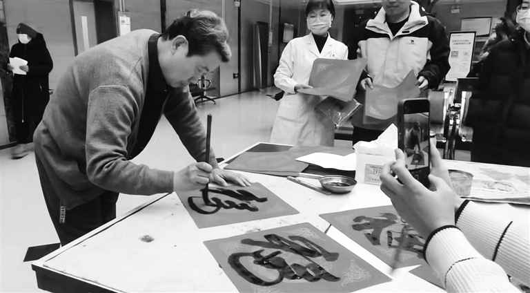 1月23日,河北大学附属医院工会书画协会开展蛇年迎春送福义写春联活动,把浓浓的年味送到职工心上。活动现场墨香四溢,蛇年春联和福字洋溢出美好和喜庆的气氛。 刘让 摄
