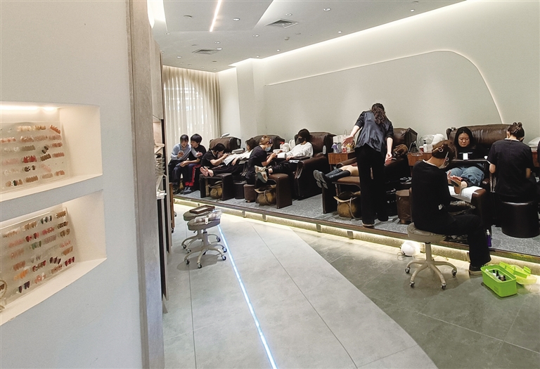 “不好意思啊,一个美甲师都没下来,要不您再逛会儿商场?等有美甲师了,我第一时间给您打电话,您再过来。”1月17日,位于北国先天下商场内的一家美甲店门口,店长陈爱梅一边查着预约单,一边给顾客道着歉。