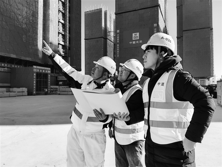 和光书苑项目建设人员在工作一线迎新春。 霍若雯 摄