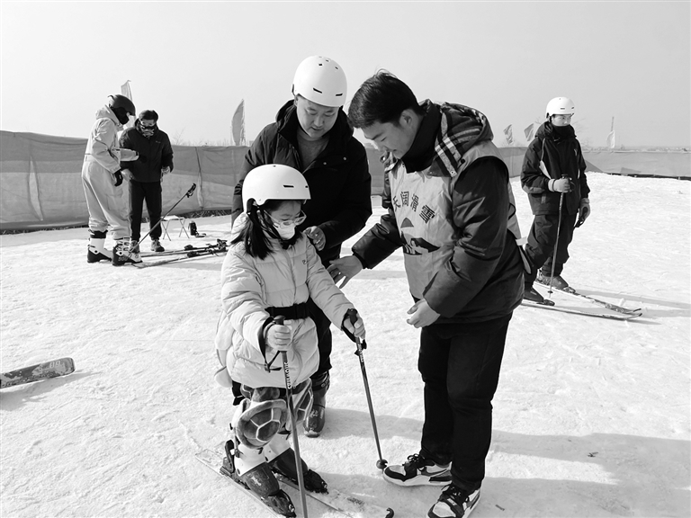 为营造安全滑雪环境,雪场配备多名专业滑雪教练员,对初学者进行免费滑雪教学。