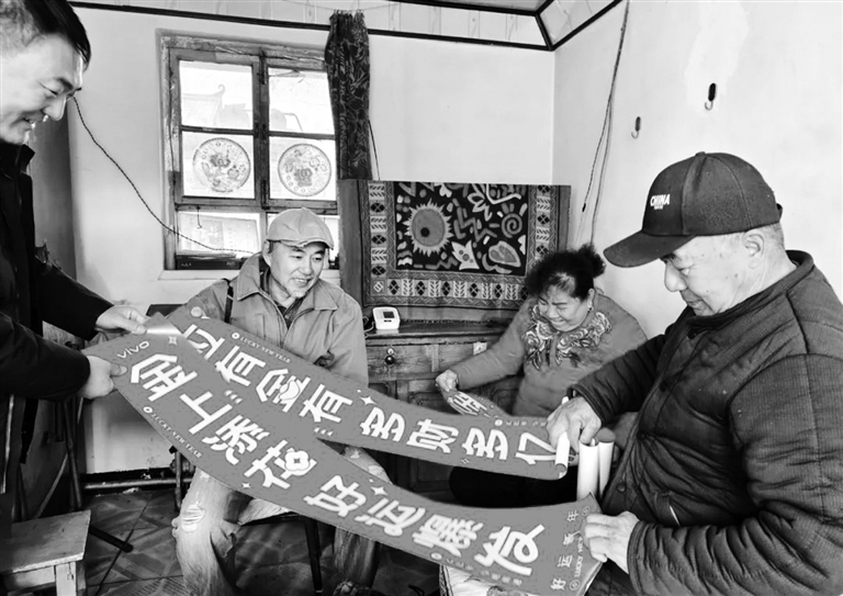 摄影志愿者在易县木厂村看望老党员,并送上对联。 闫晓丁 摄