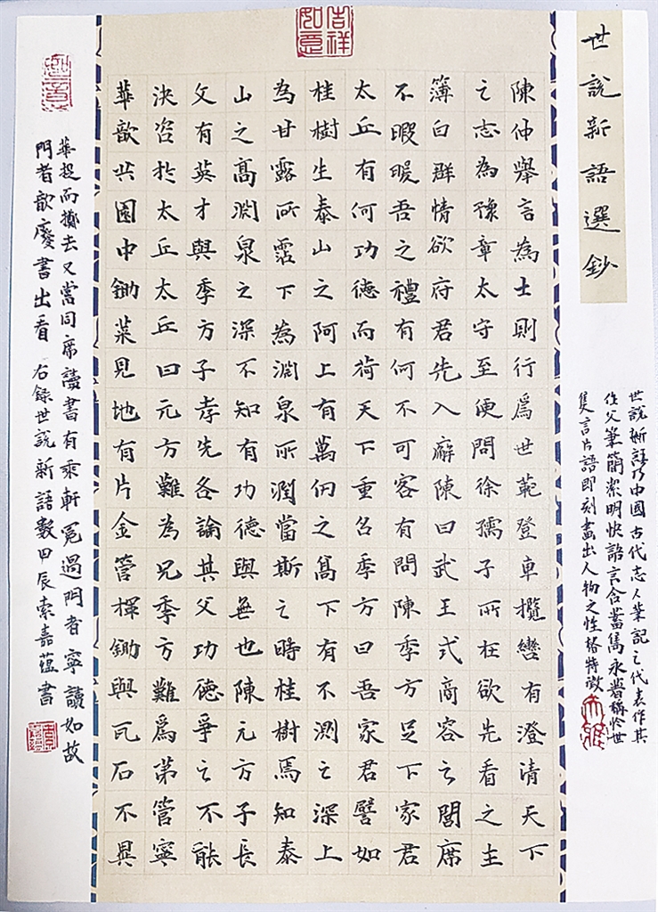 □《世说新语》选抄 索嘉蕴(10岁) 推荐单位 墨轩书画 指导教师 靳超