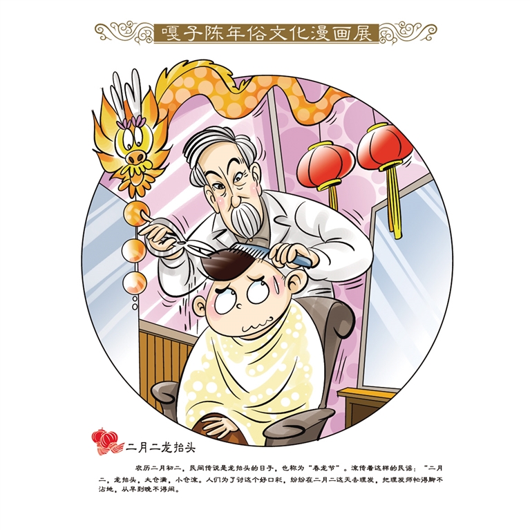 二月二龙抬头,民间有“剃龙头”的习俗,寓意辞旧迎新,带来好兆头。 嘎子陈(陈永亮)绘