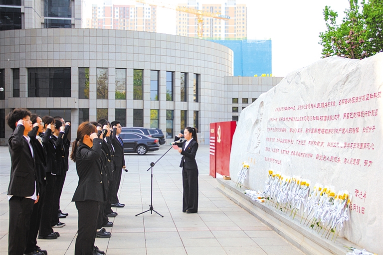 4月10日是“人民楷模”李保国逝世9周年纪念日,河北农业大学林学院40余名师生到李保国纪念石前敬献鲜花。广大师生表示,要以李保国老师为榜样,汲取奋进力量,践行使命担当,走好新时代太行山道路。 边志鹏 摄