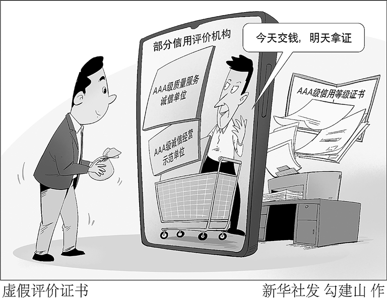 “商家花钱‘买’证书误导消费者的情形,可能构成虚假宣传。”北京市京都律师事务所律师张锦建议,进一步推动信息的跨部门互通,提高信用评价机构的准入门槛,推行强制性的企业信用评价标准。同时,针对“山寨”信用评价或以颁发评价证书为由向企业推介收取费用等行为,需市场监管、公安部门共同发力加以整治。