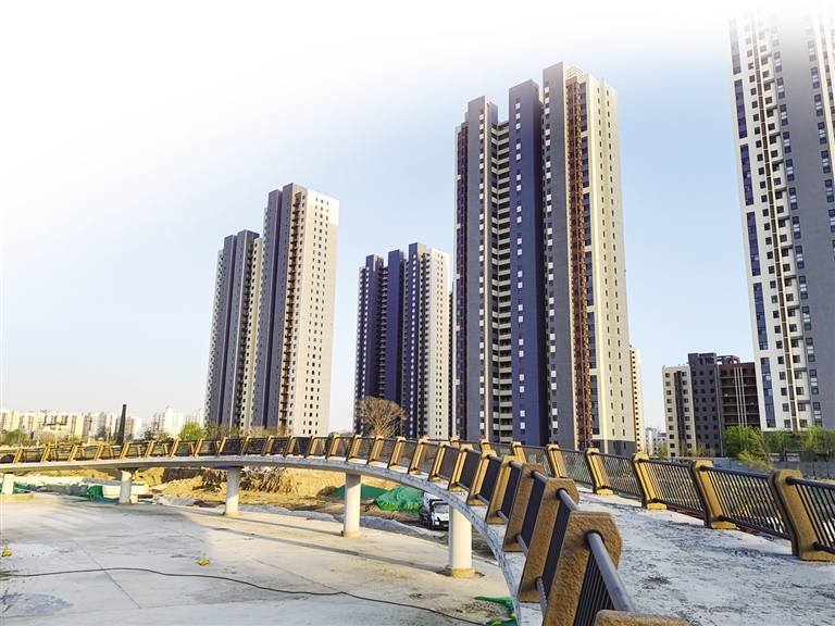 宽阔河道蜿蜒而过,犹如一条灵动纽带,将公园绿地与居民楼宇紧密相连。 郝子帅 摄