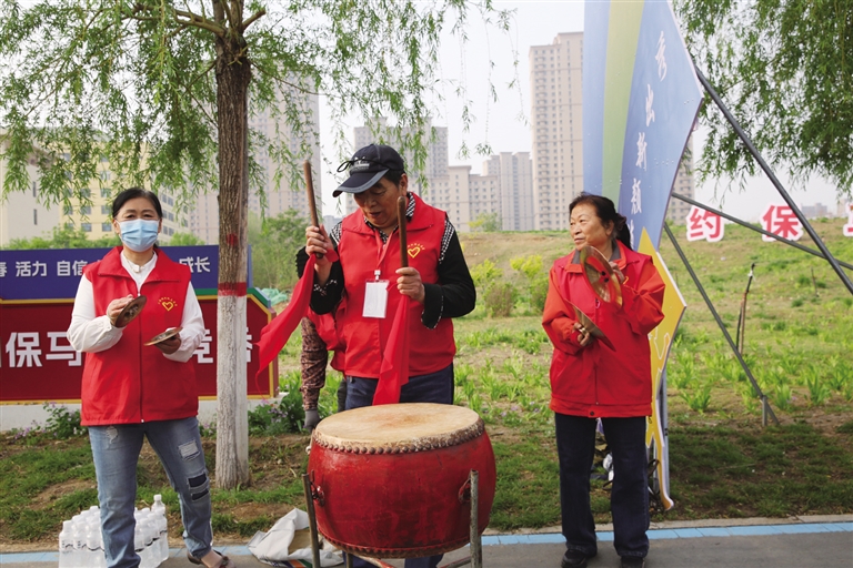 “激情保马!活力竞秀!加油!加油!”三十余人组成的公园时代社区啦啦队,挥舞着闪亮的手摇花,将现场热烈的气氛瞬间点燃。他们用灿烂的笑容展示保定人的风采,为激情迸发的赛事增添强大活力。公园时代社区党总支书记袁璐告诉记者:“我们社区有一个保马啦啦队志愿者群,历届保马大家都积极参与。年龄最大的是65岁老人,小朋友也跟随家长来感受保马氛围,我们要用呐喊声祝愿所有参赛选手乐享保马、跑出佳绩。”