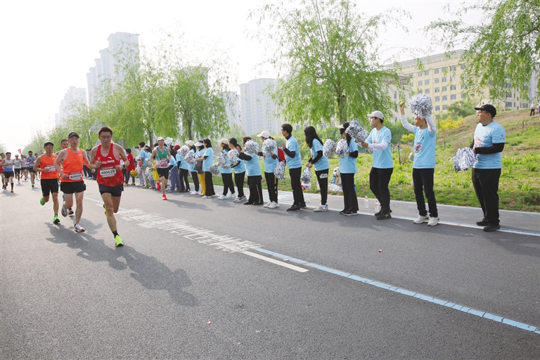 伴随着激昂的鼓点,舞龙腾跃,气势恢宏,与选手们的步伐交相辉映。“很高兴能来参加赛事活动展演,我们这支舞龙队已经组建十个年头了,每年都来为保马助威。”保定舞龙队组织者金国民告诉记者,“我们用舞龙为运动员加油,马拉松比赛就是要跑出龙的精神!”