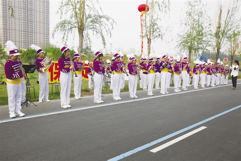 前卫路小学管乐团以阳光朝气的音乐和节奏,为赛道带来新鲜活力。