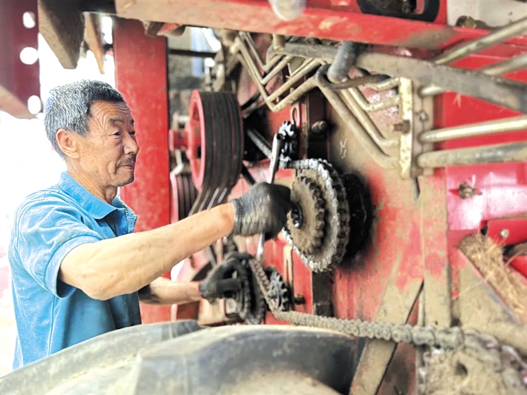 在望都县高优农业技术服务专业合作社,农机技术人员对小麦联合收割机、播种机等大型农机设备进行检修、调试及保养,从源头上降低农机故障率,减少机损。“每年麦收前,技术人员都会准时来合作社开展技术指导。”合作社负责人黄晓松介绍,“目前,合作社内30台(套)大马力拖拉机、小麦联合收割机、播种机等大型农机已接受‘体检’,我们的目标就是确保这些农业机械在关键时刻拉得出、用得上、用得好、用得安全。”
