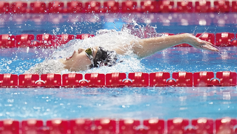 7月28日,在2025年世界游泳锦标赛游泳女子200米个人混合泳决赛中,12岁小将于子迪以2分09秒21获得第四名,刷新个人最好成绩。图为当日于子迪在比赛中。