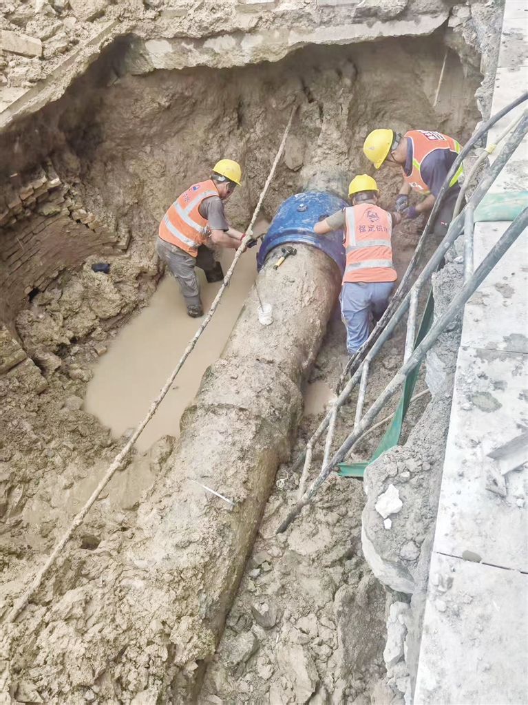 保定晚报讯(记者耿静 通讯员任雅青 赵霜)7月11日9时,保百购物广场门口一处DN600铸铁供水主管道突发渗漏,保定市供水有限公司经过近12小时的连续奋战,成功完成抢修任务,保障城市供水“生命线”的安全畅通。