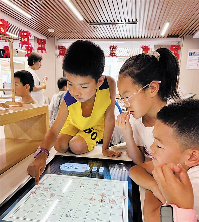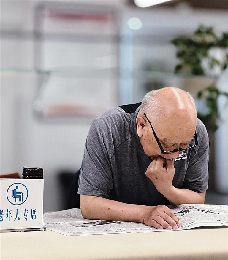 图书馆的通道台阶上,有人捧书静坐,额角的薄汗在凉意里悄然消散;靠窗长桌旁,学生们摊开笔记,笔尖划过纸张的沙沙声,竟比窗外的蝉鸣更令人安心;就连角落的沙发区,也有老人戴着花镜,指尖在书页间缓缓游移,偶尔抬头望望窗外流泻的阳光,随即又沉入字里行间。