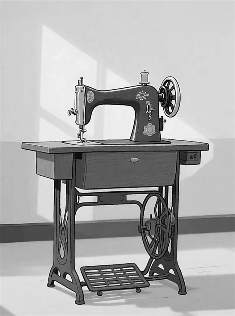 母亲坐在缝纫机前,轻轻拨动右侧那个亮闪闪的镀铬金属圆盘,脚下有节奏地踩动踏板,针头“咔嗒咔嗒”地不断伸缩。那一轴长线在布料间穿梭,像极了在舞蹈。那时候,我们兄妹的衣服都是母亲用缝纫机缝制的。母亲心灵手巧,衣服总是做得特别新潮又合身。