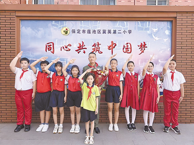 ▲日前,保定冀英学校全体师生齐聚操场,举行以“烽火记忆照前路,秋风为序启新程”为主题的爱国主义教育活动,特邀直升机飞行员李文江分享体会感受。该校六年级学生朗诵了《星星之火永不灭》,激昂的集体宣誓和全场齐唱《强军战歌》更是将现场气氛推向高潮。冀英第二小学校长赵明涛表示,此次活动旨在通过沉浸式仪式教育,引导学生传承红色基因,赓续奋斗精神,厚植爱国情怀,铭记抗战历史,珍惜和平,奋发报国,以饱满昂扬的姿态迎接新的挑战。 耘溪 邢丹 报道