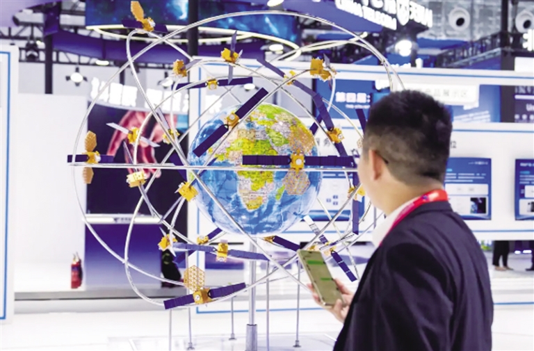 观众在参观第四届北斗规模应用国际峰会。 新华社记者 陈思汗 摄