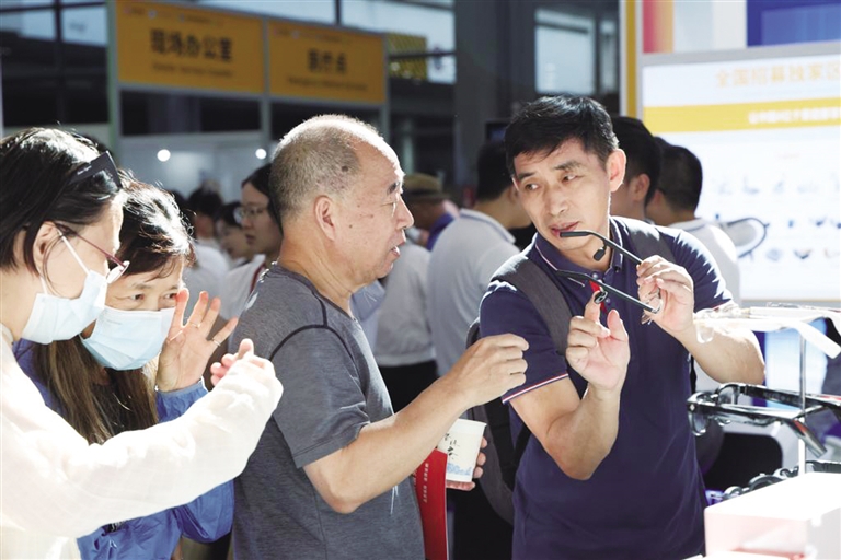 观众在2025深圳国际智慧养老产业博览会现场了解一款助听AI智能眼镜。 新华社记者 梁旭 摄