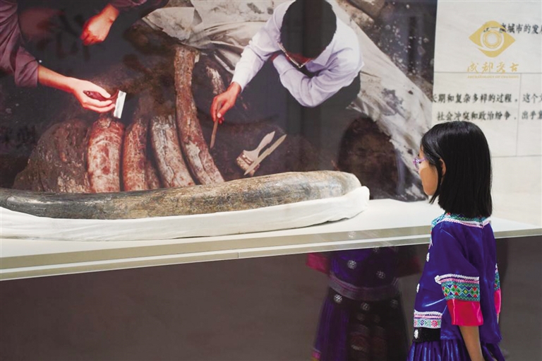 在成都考古中心展出的象牙(资料图片)。 新华社发